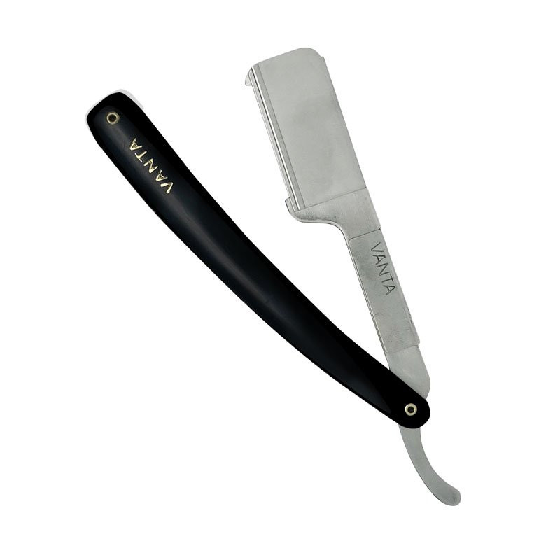 Brzytwa na wymienne całe żyletki Vanta RA 111N ma ramię ze stali nierdzewnej, uchwyt wykonany z czarnego plastiku.
