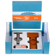 W kolekcjonerskim zestawie Edycja 1896 wraz z maszynką znajdują się: skórzane etui podróżne i paczka żyletek Merkur Super Platinum 10 sztuk.