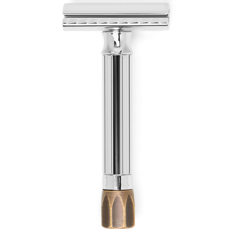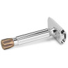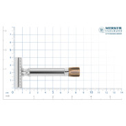 Merkur Solingen PROGRESS 500C Wygodna regulacja ekspozycji żyletki. Klasyk od lat 50-tych XX wieku. Model z metalowym pokrętłem (antyczny mosiądz)