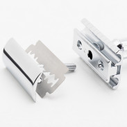 Poniżej rysunek poglądowy obrazujący wymianę żyletki w maszynce 2-częściowej (na przykładzie modelu 34C):