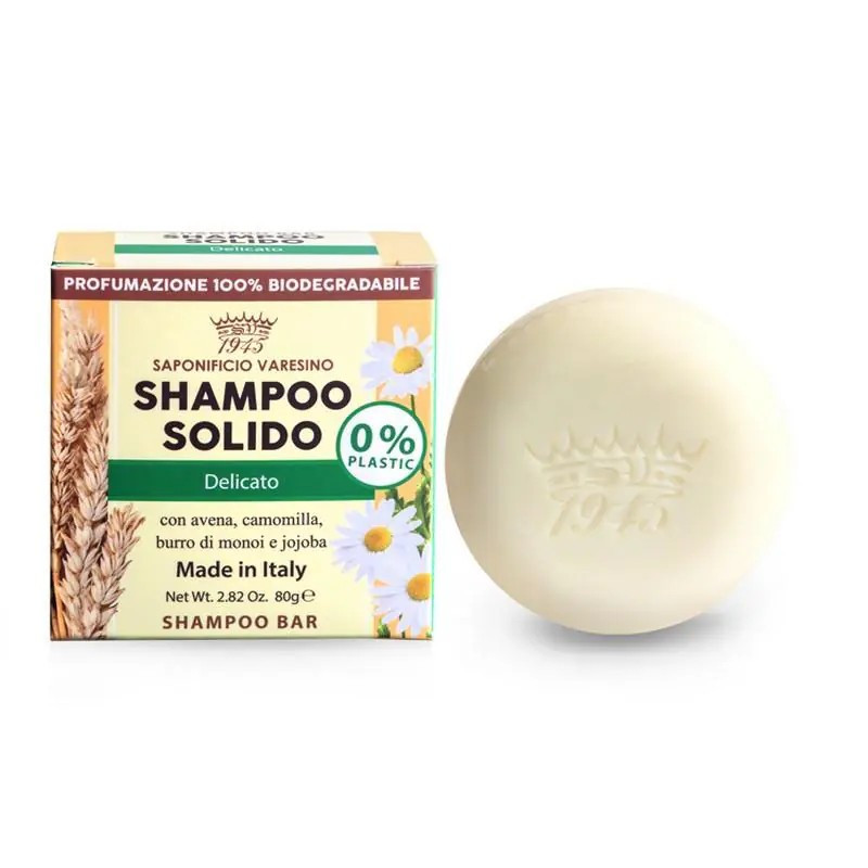 Delikatny szampon w kostce z masłem Monoi sprawia, że włosy są super miękkie i łatwiejsze do rozczesania, a rumianek ma działanie przywracające równowagę na skórze głowy. Olejek jojoba w połączeniu z płatkami owsianymi wzmacnia włókno włosa i pielęgnuje najdelikatniejszą skórę głowy, chroniąc ją przed czynnikami zewnętrznymi, nawilżając i pielęgnując najdelikatniejsze i najbardziej kruche włosy.