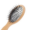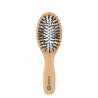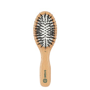 Mała poręczna szczotka do włosów Unisex z włosiem wegańskim i mieszanką nylonu. Z eleganckim i wygodnym uchwytem z naturalnego drewna.