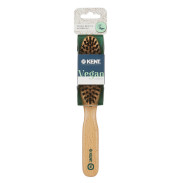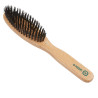 Wygodna podłużna szczotka wegańska z włosia wygładzającego i nadającego połysk włosom. Uchwyt z naturalnego drewna.
