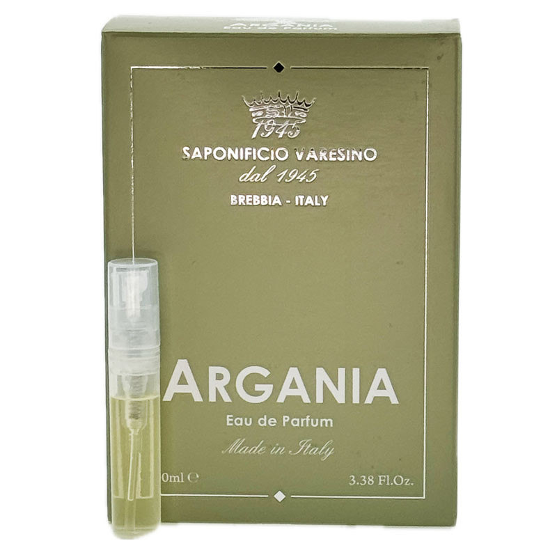 Opis zapachu Saponificio Varesino Argania: Wysublimowane, orientalne perfumy męskie, w których mirra łączy się ze słodkimi nutami wanilii i bobu tonka, tworząc otaczający i uwodzicielski zapach. Otwiera się słodkimi cytrusowymi nutami magnolii, słodkiej pomarańczy, migdałów i bergamotki, a następnie przechodzi drzewnymi, orientalnymi nutami mirry, drzewa kaszmirowego, benzoesu, paczuli i drzewa gwajakowego. Kompozycję zamykają delikatne nuty białego piżma, fasoli tonka, wanilii, ambry i drzewa cedrowego.